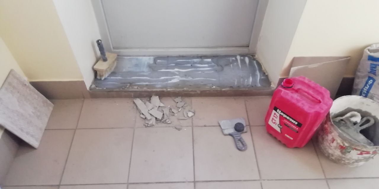 Восстановили напольную плитку у лифтового холла в доме № 16 по улице Смельчак